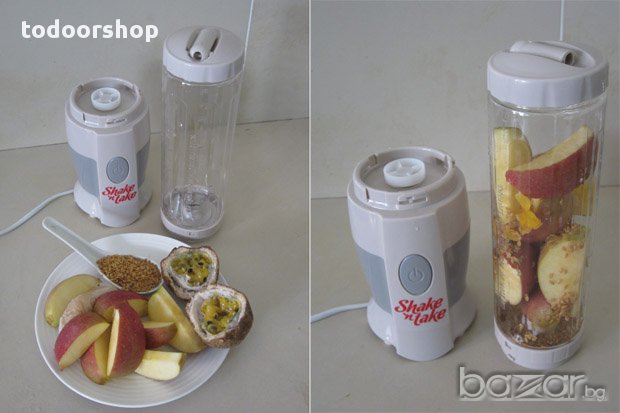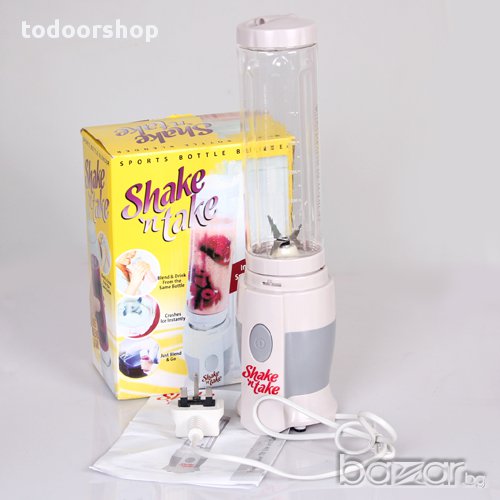 Shake 'n Take на страхотна цена. Бихте ли искали да се насладите на здравословна и вкусна напитка по път за работа? Не е необходимо да търсите барове, където продават фреш или или други здравословни заместители. С Блендер - Бутилка Shake 'n Take можете да правите собствени сокове и шейкове. Просто блиндирайте, отвийте и вземете вашата напитка по път за работа, фитнес или училище.