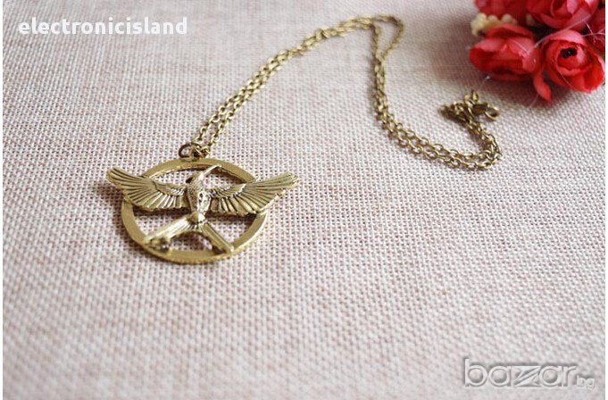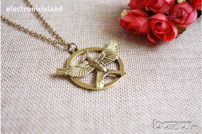 Колие от филма Игрите на глада 3 Сойка присмехулка Hunger Games Mockingjay,цвят старо злато и злато