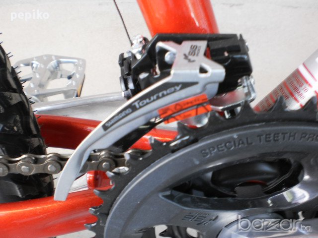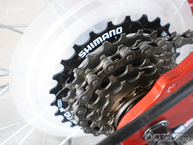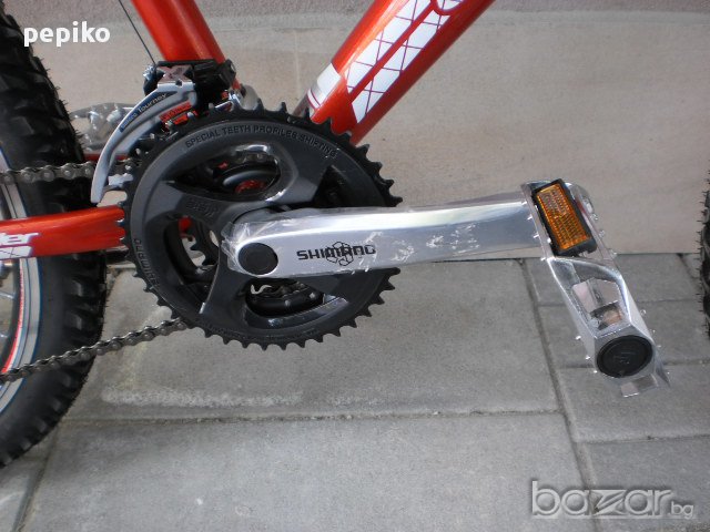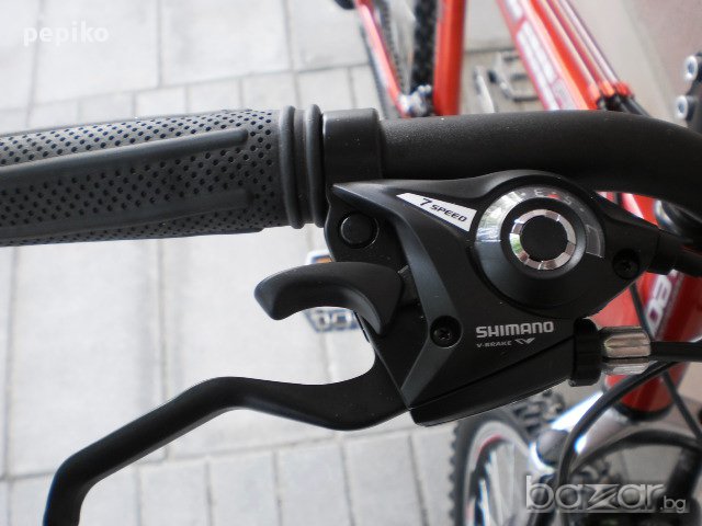 Нов юношески спортен велосипед FENIX модел 2015г сглобен в България, олекотена метална рамка 24 цола с 21 скорости, алуминиеви курбели SHIMANO TOURNEY FC-M171, средно движение алуминиеви курбели SHIMANO касета, алуминиеви педали, преден отклонител SHIMANO TOURNEY FD-TX51-7, заден отклонител заден отклонител SHIMANO TOURNEY RD TX35, задни венци Shimano MF TZ 21, предна и задна алуминиеви главини ASSES, удобна силиконова седалка DEFENDER, алуминиеви лапа и колче ZOOM , преден амортисьор ZOOM, предна и задна алуминиеви вибрейк спирачки, алуминиеви двойностенни усилени капли, гуми със спортен грайфер KENDA 24 x 1.95, цвят бордо металик,много приятен, велосипеда е единична бройка Уникален