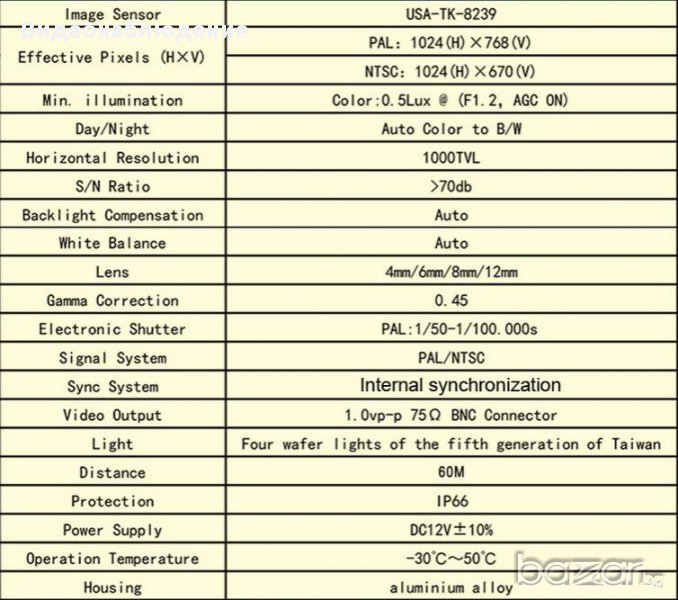 сензор на камерата : 1/4" CMOS USA-ТК-8239