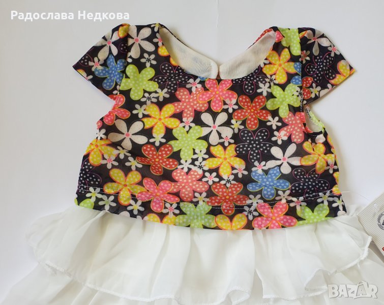 Страхотна шифонена рокля на воали. Горната част е с красиви цветя, а долната е на воали. Има подплата. Налични размери -1 г. Внос от Турция. Цената е за 1 брой!