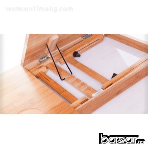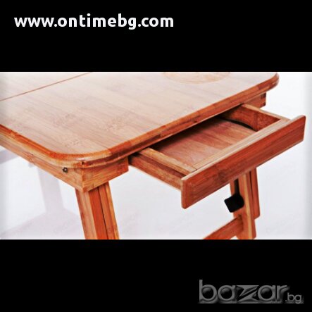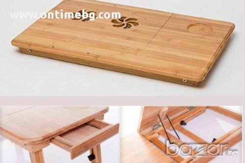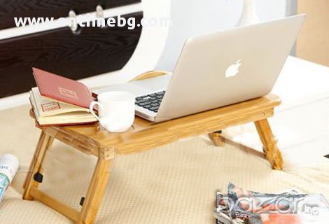 масичка за лаптопЗдрава и стабилна, универсалната бамбукова масичка ти дава възможност да работиш комфортно с лаптопа си навсякъде. Вече може да сърфираш удобно навсякъде: в леглото, на пода, в парка и на още много други места. Мултифункционална маса, която може да се използва като лаптоп стойка и охладител, както и за подкрепа при четене и писане, за романтична закуска в леглото, за дома, колата, офиса, и навсякъде, където ви потрябва. Може да се регулира на различни височини и ъгли на наклон и осигурява гъвкавост при използването.Вградените в масата 2 бр. вентилатори охлаждат вашия лаптоп, което позволява продължителната му работа дори и при висока околна температура, без да забива и без да намалява неговата производителност. Вентилаторния блок е прикрепен към долната страна на плота и лесно може да бъде свален, когато не желаете да използвате масичката като охладител. Захранва се посредством USB от лаптопа.Дали в легнало положение, седейки на дивана, пода или в леглото, масичката може лесно да се адаптира към позицията, в която се чувствате най-комфортно. Защо да изберем маса за лаптоп?Проектирана е за максимално удобство.Подходяща е за всеки модел лаптоп.Лека и преносима.Елиминира прегряване.Чудесна възможност за хората с болки и бременни!Може да се използва като поставка за четене, писане и хранене. Характеристики:Вентилаторен блок с 2 бр. вентилатори и USB кабел за захранванеПодвижен, накланящ се плот с размери: 34/30 см.Неподвижен плот с размери: 16/30 см.Височина – регулируема от 20 до 30 см.Здрава и стабилна. Екологичен продукт: Изработена от бамбукРазмери: 50/30/4,3 см. Тегло: 2,5 кг.