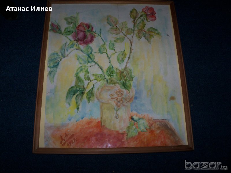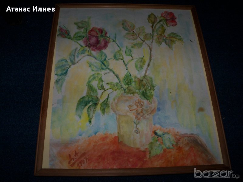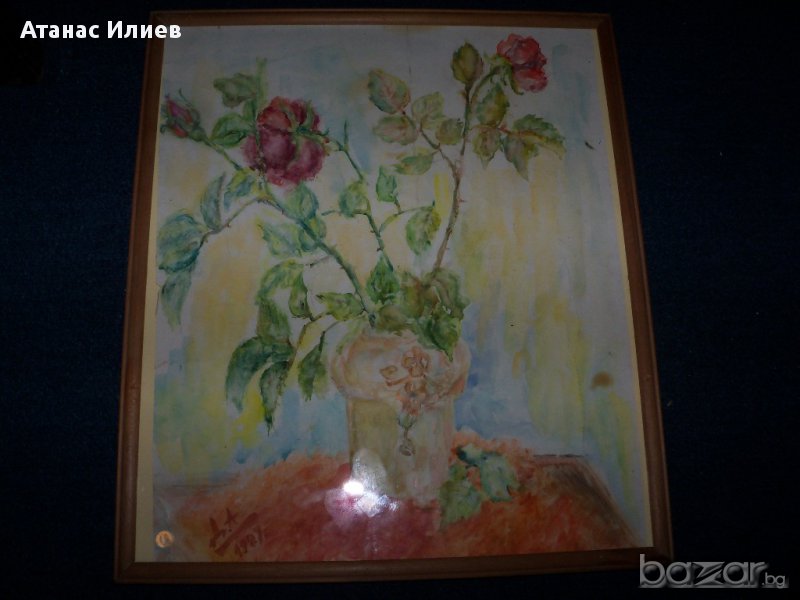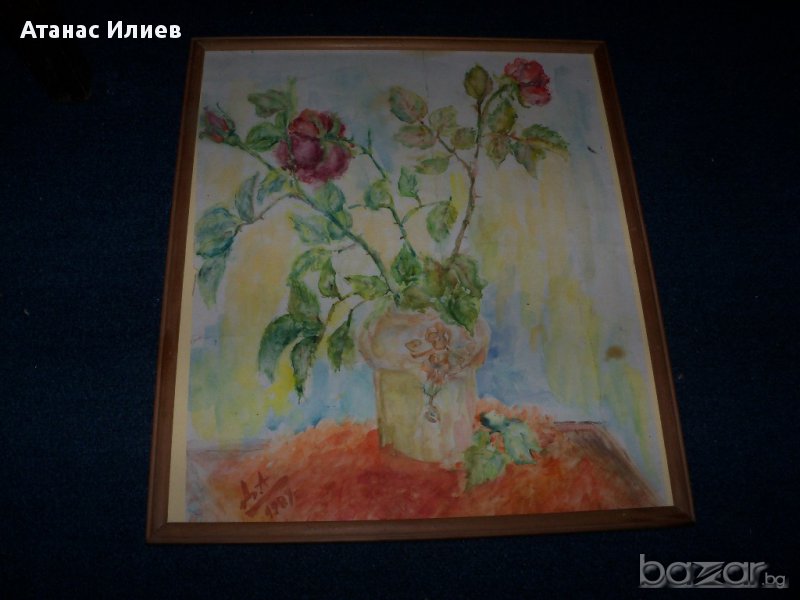 Красив стар акварел "Рози" от художничката Десислава Андреева Илиева, акварела е рисуван 1989г. Размери с рамката 34х39 см.