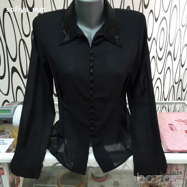 Дамска Риза с перли черна и бяла → Обява 10276055