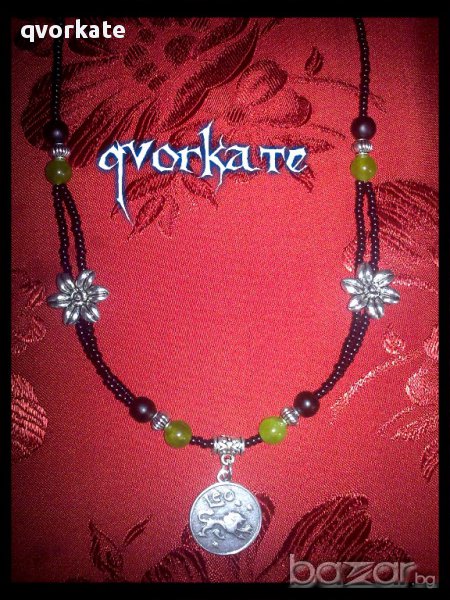 Колие зодия Лъв-от жадеит,оникс,метални елементи,чешки мъниста-по врата -от начало до край 44см.