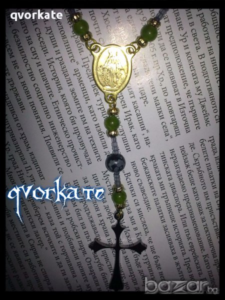 Броеница Дева Мария-от халцедон,обсидиан,метални елементи,чешки мъниста-36см.