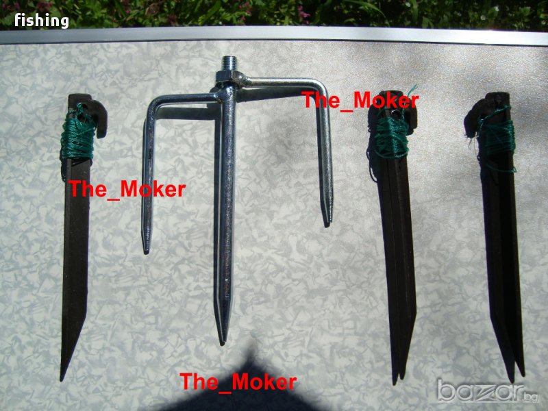 3-Колчета за захващане за земята + въжета за тях + Закопчалки за Въжетата