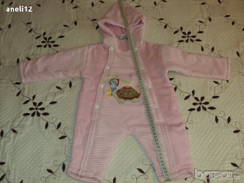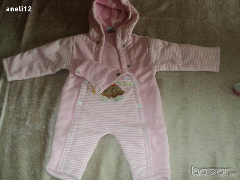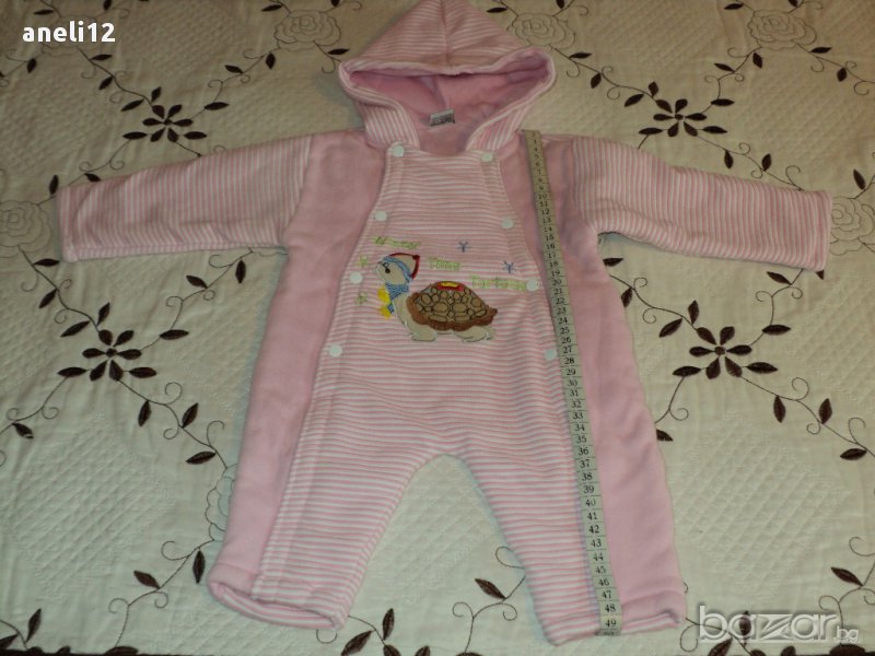 Памучен бебешки гащеризон, тип космонавт, за момиченце - 3-6