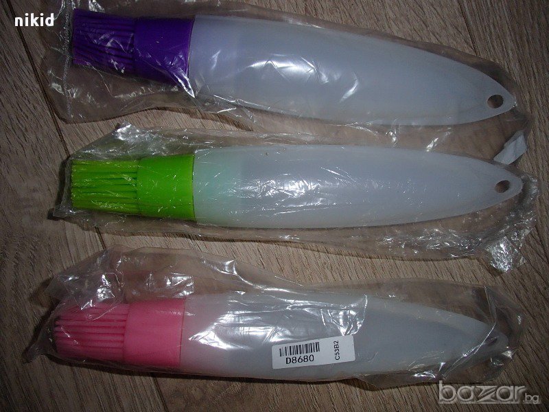 в различни цветове за омазняване с олио,както и за намазване с разбито яйце,много удобно,пълни се ,затваряме и е готово за нанасяне.
