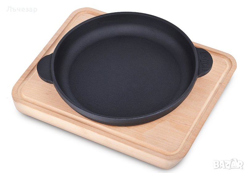 - Чугунен кръгъл порционен тиган (сач) с две лети дръжки с дървена подложка или без подложка, неемайлиран, 18 см, 20 см (снимки 1-2):