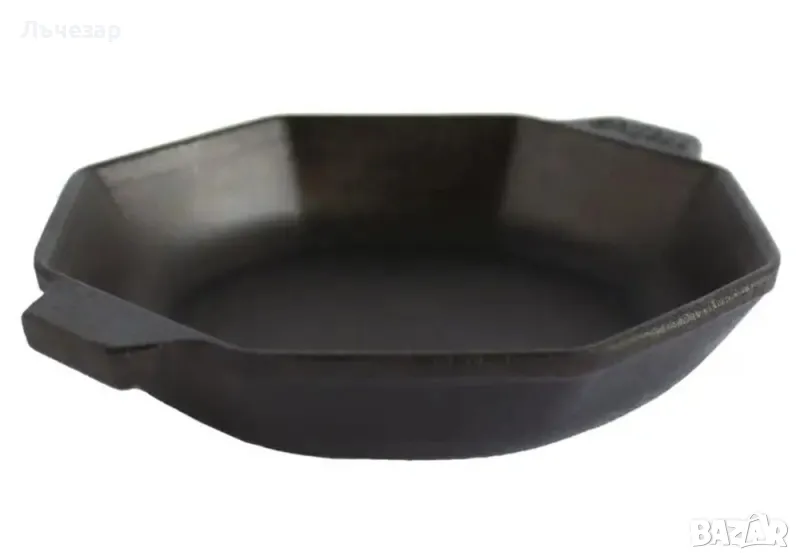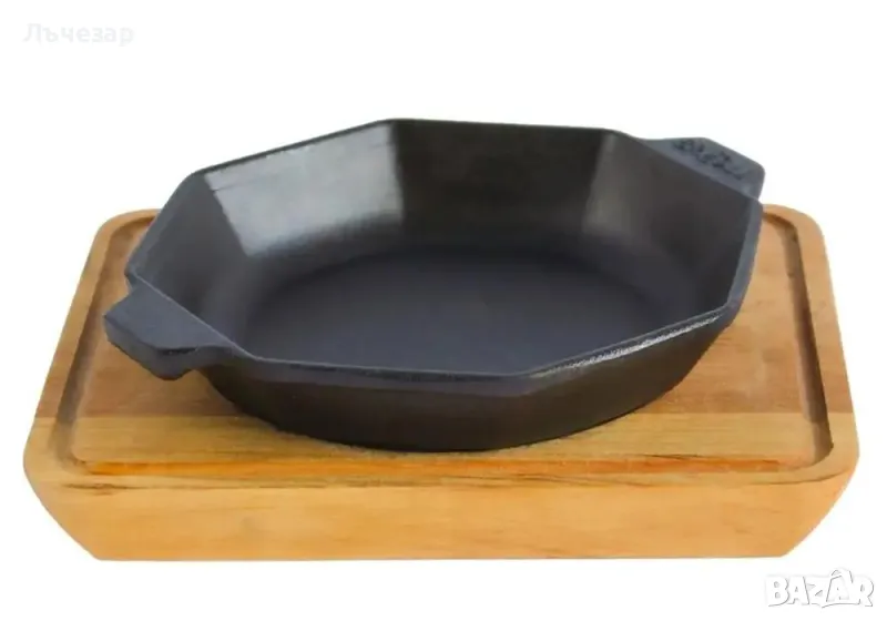 - Чугунен oсмигранен порционен тиган с две лети дръжки с дървена подложка или без подложка, неемайлиран (снимка 14):