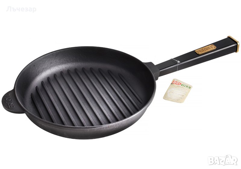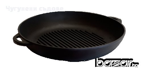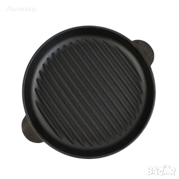 Чугунен грил тиган кръгъл с дървена дръжка (бяла, черна, бордо дръжка) неемайлиран, омаслен, 24, 26, 28 см (снимки 1-3):