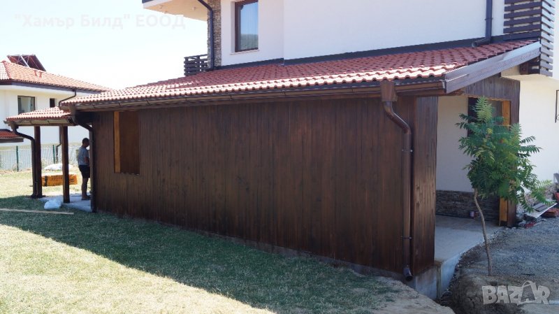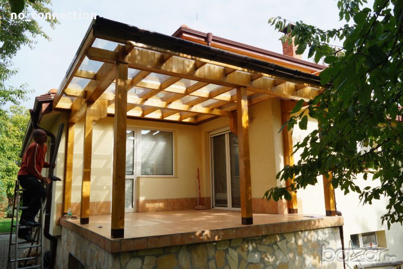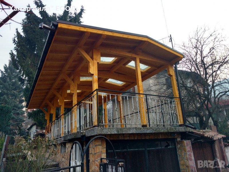 Фирма Хамър Билд ЕООД от гр.София, строи дървени покривни конструкции от всякакъв тип, дървени навеси за коли, беседки за двора, навеси за балкони и тераси също от дърво, летни барове и открити заведения, дървени перголи и навеси за барбекю в двора. Добра цена и високо качество с 5 годишна гаранция !