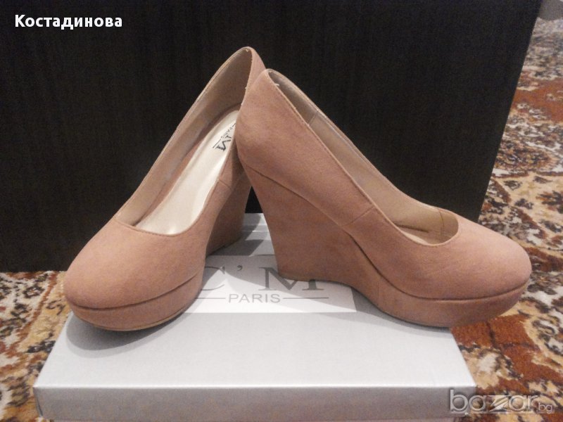 Велурени обуяки на платформа 12 см. са високи.Размера е 38 - 39.Обувките са обличани 2 пъти нямат никакви забележки