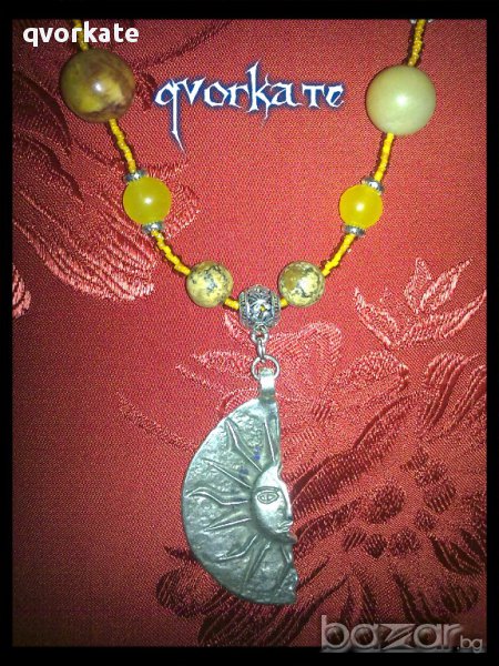 Колие Слънце-от ахат,метални елементи,чешки мъниста-30см./слънце-4,5см./
