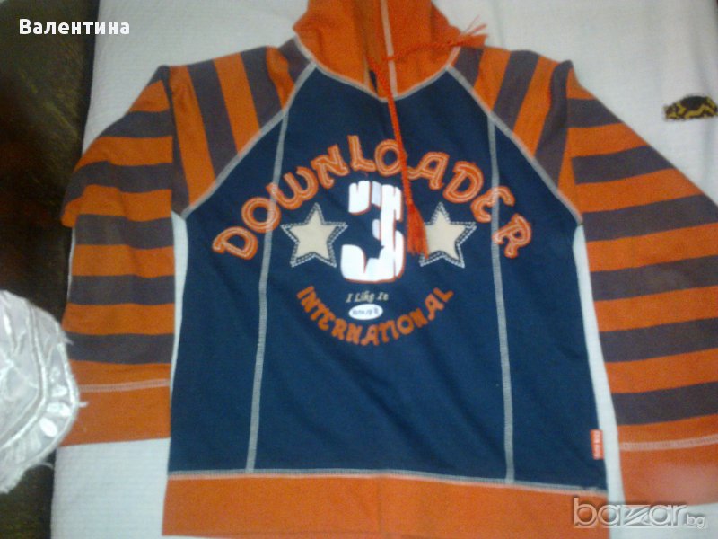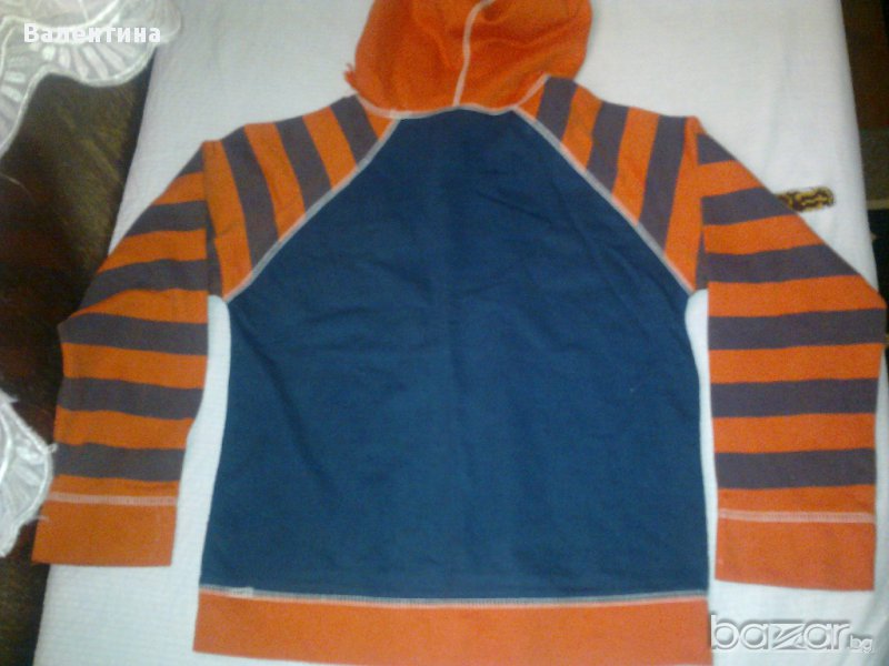 Красива блузка с дълъг ръкав за пролетта. В оранжево и с качулка. За момче. В отлично състояние.