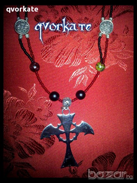 Колие вампирски кръст-от оникс,яспис,метални елементи,чешки мъниста-от зак.до закопчалка-48см.