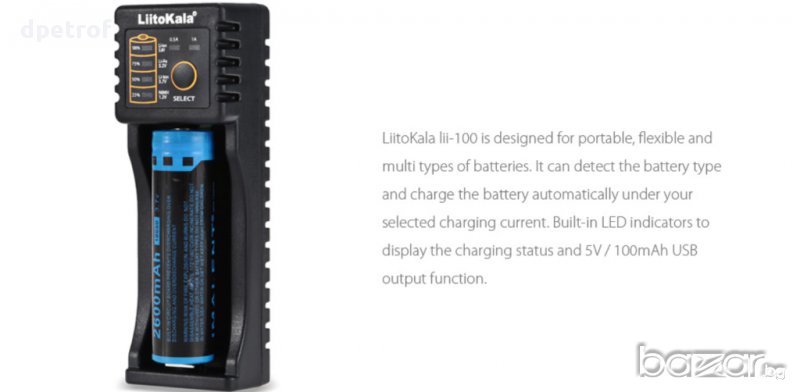 Най доброто еднослотово зарядно устройство на пазара! Оригинал. Поддържа всякакъв тип акумулаторни батерии а работният му интерфей е реверсивен micro USB, като при поставена батерия максималният му изходен ток е 1 ампер.