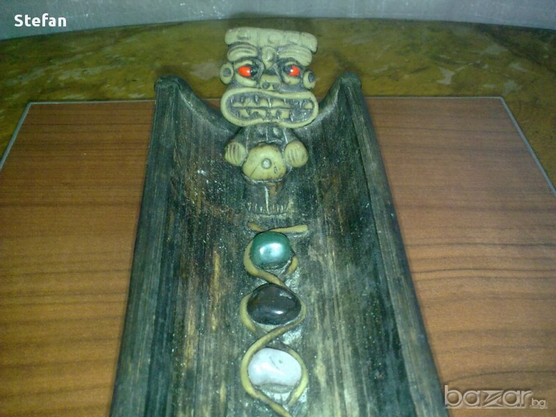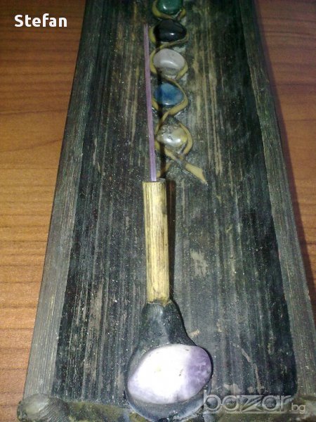Ефектна дървена поставка за ароматни пръчици с полускъпоценни камъни - 11€.