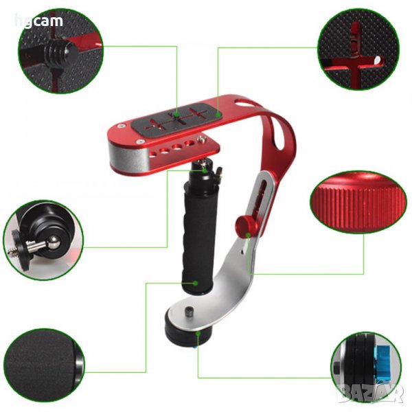 Професионален Steady Video стабилизатор предназначена за използване с видеокамери, огледално-рефлексни фотоапарати, HD огледално-рефлексни фотоапарати и т.н. Осигурява отлична стабилност и намалява вибрациите на фотоапарата по време на видеозапис, осигурява високо качество и яснота на сниманите видеа. Изработен от алуминиева сплав осигуряваща здравина, удобство при работа, дълготрайност и надеждност. Той също така разполага с гумирана, нехлъзгаща монтажна повърхност, така че камерата ви ще се закрепи здраво за него без да се нарани. Изключително подходящ за action камери като GoPro, SJ4000, iShare, xiaomi yi и много други