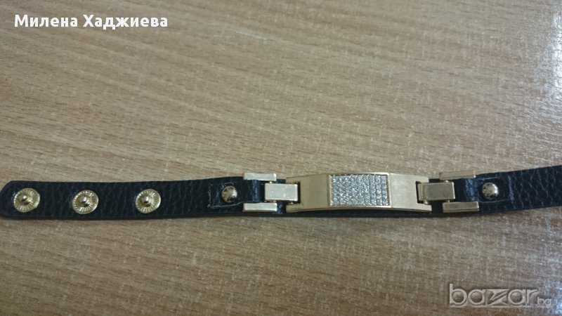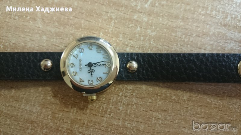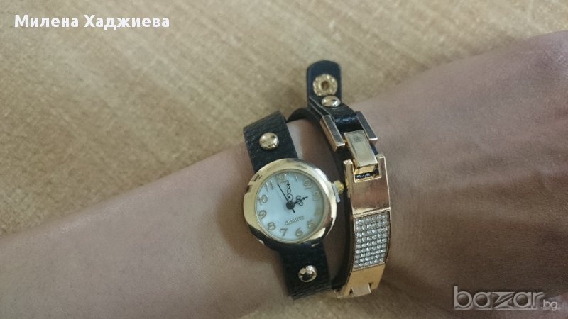 Нов черен часовник - гривна със златисти елементи, истинско бижу. С 3 тик-так копчета за закопчаване и регулиране на ширината.