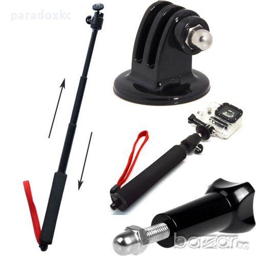 Комплектът включва: 1бр. монопод, 1бр. адаптер за екшън камери