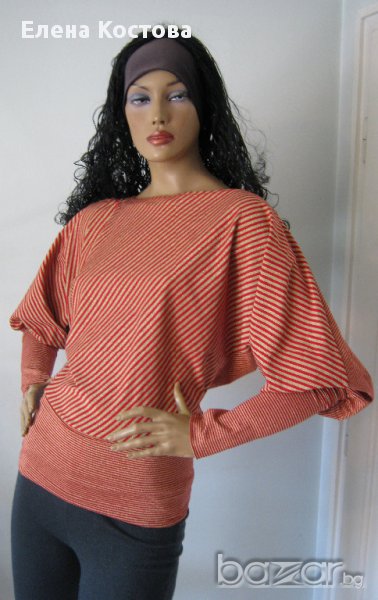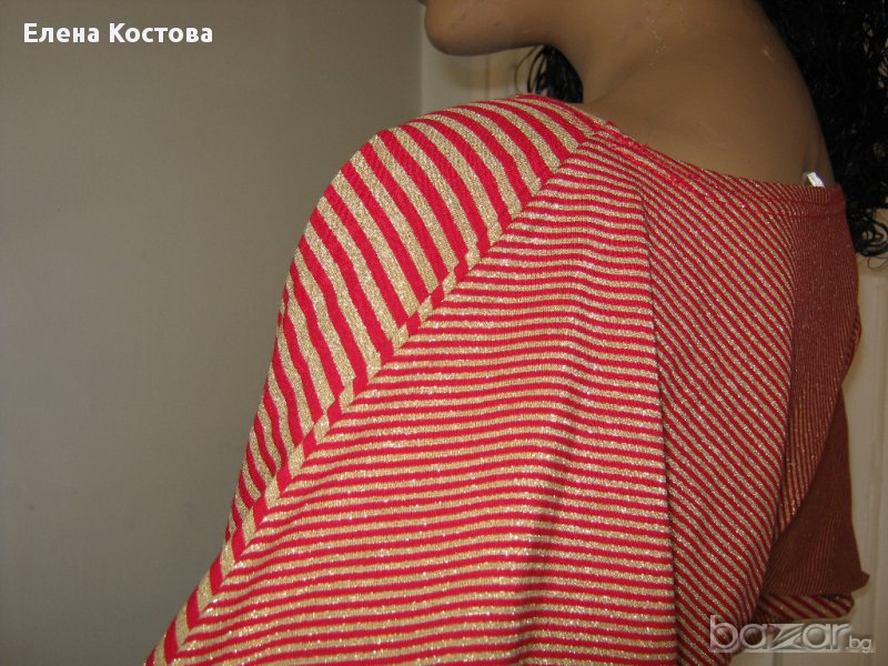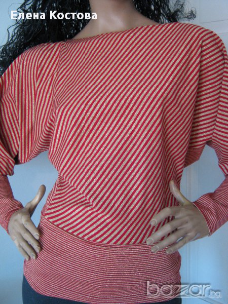 Блуза в червено/златно райе, прилеп ръкав. Бъдете стилни и елегантни.