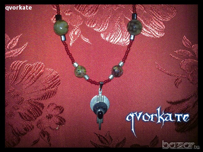 Колие с висулка-от яспис,ахат,метални елементи,чешки мъниста-28,5см.
