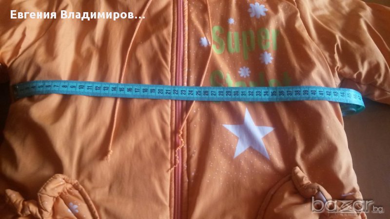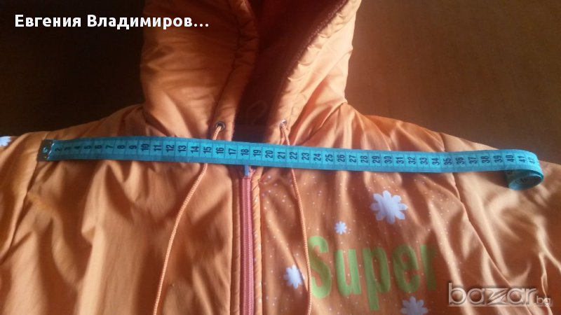 Якето е много топличко, с полар от вътрешната страна. Качулката не се сваля. Единствената забележка е малко скъсано на джобчето - вижда се от снимките, размерите също се виждат