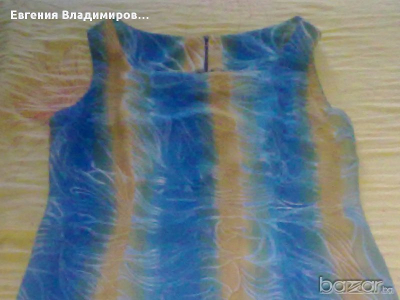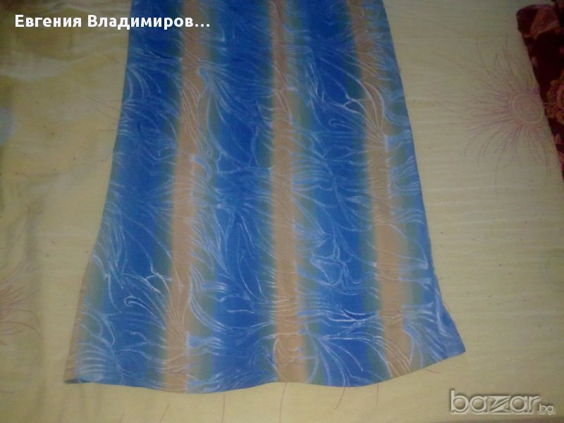 Слагана е само един път. Лека и удобна е с цип цепка отзад. Дължина 127 см., горе в рамената е широка 37 см., под мишниците ширината е 48 см., талия 44 см., ханш 51 см.
