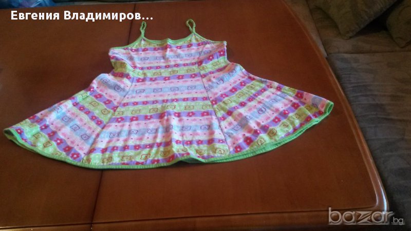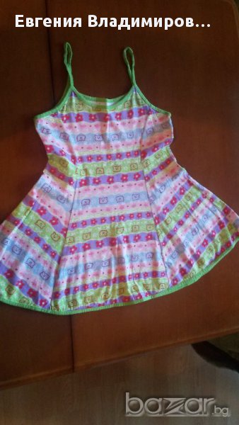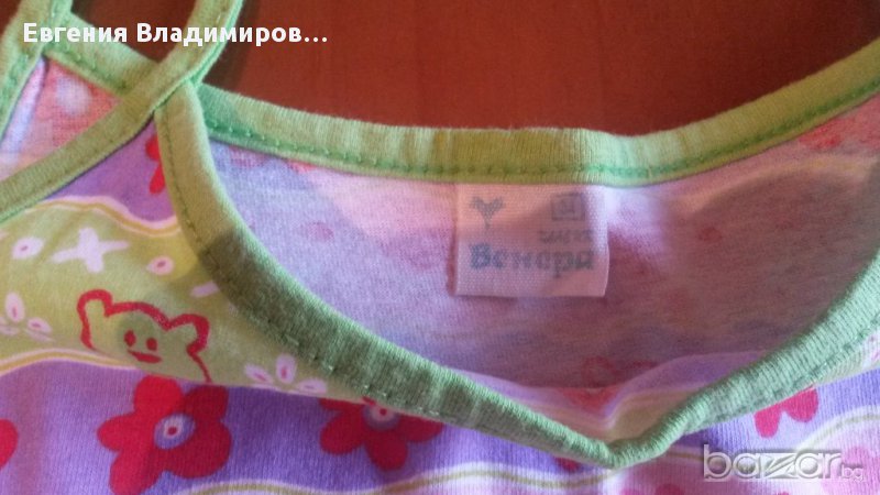 Три броя с различен цвят потничета, размер 116, пижамката е размер 38 и е българско производство, а рокличката 34 на Венера.