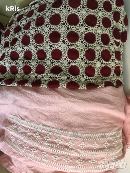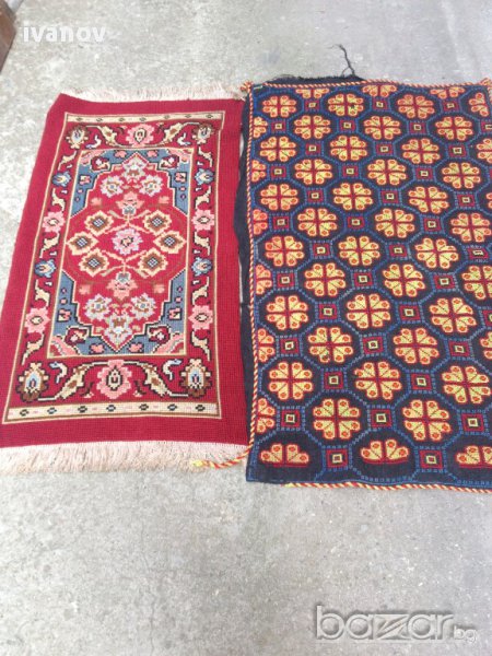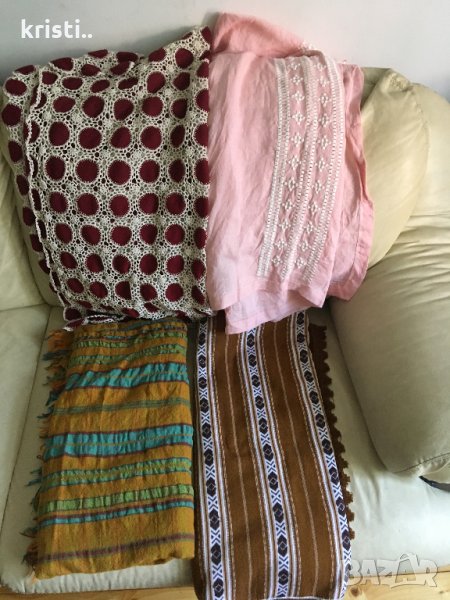 предлагам красиво дамско протмоне, персийски мотив=55лв, няколко чисто нови ковьора : в синьо с птиците 70х130см по 149лв/бр и в червени с дзамията 55х105см=129лв, три плюш персийски покривки: в синьо 140х180см и друга керемидена 130х150см= по 99лв/бр, имам няколко плетени покривки за маса-голяма бежово-бяла 80х160см елипса, и други плетени домашни стари блузи,кърпи,карета,шапки,дългокосмести вълнени китеници ,чипровски и персийски пътеки,килими и черги...по договаряне