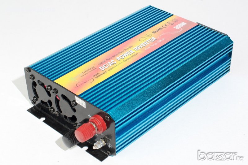 Инвертор чиста синусоида 12v 300/600 вата на немската фирма Солартроник. Чисто синусоидално напрежение Функция мек старт Средната консумация на енергия в режим изключен 0 вата Защита срещу обръщане на полярността на батерията (стопяеми бушони) Автоматично изключване в случай на претоварване или късо съединение Одобрен за употреба в моторни превозни средства Здрав корпус от алуминий с форма на радиатор. Сертификати: CE, RoHS, производствени E8 според DIN ISO 9001:2000