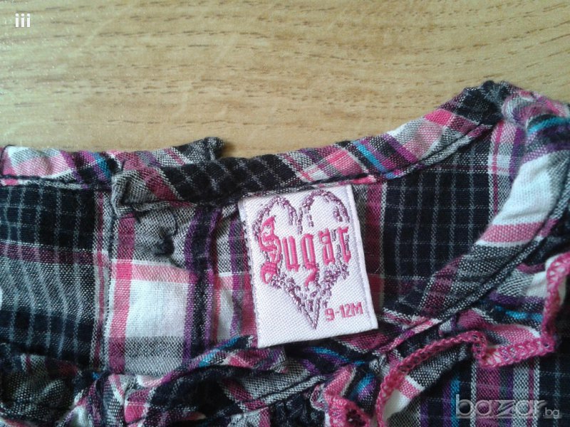 Рокличката е нова, само е изпрана. По етикет е за 9-12 месеца, обаче е доста умалена, затова и не успяхме да я облечем.