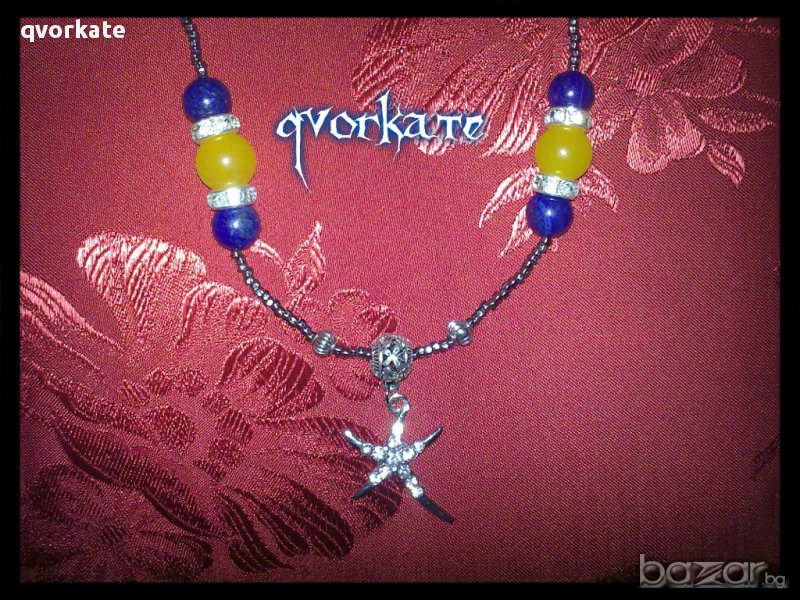 Колие звезда - от содалит,халцедон,сребристи елементи,чешки мъниста - 24,5 см.