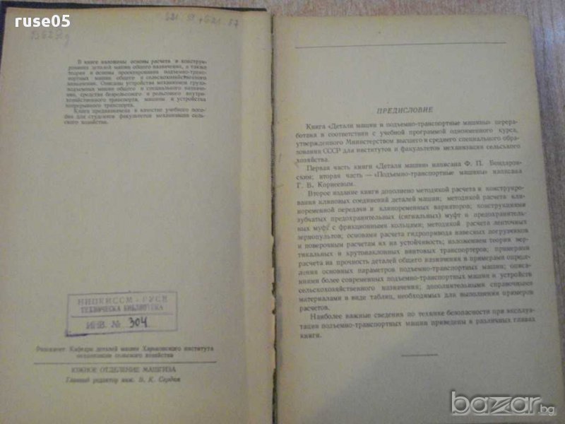 Книга "Детали машин подъем.транс.маш.-Ф.Бондаровский"-552стр → Обява 10700665