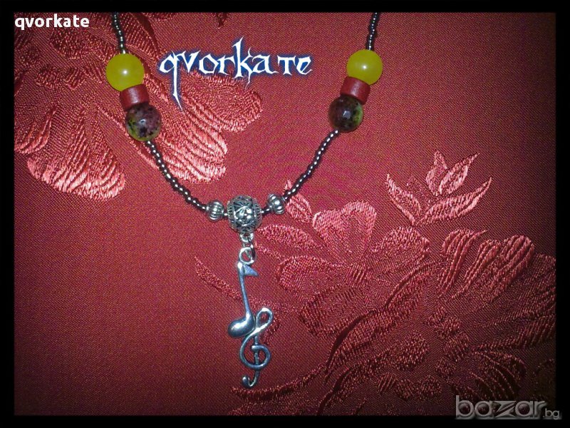 Колие ноти-от яспис,ахат,керамика,метални елементи,чешки мъниста-27см.
