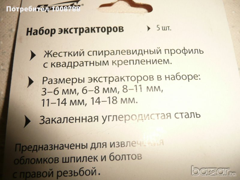 Инструмент за вадене на скъсани шпилки и болтове. К-т 5бр