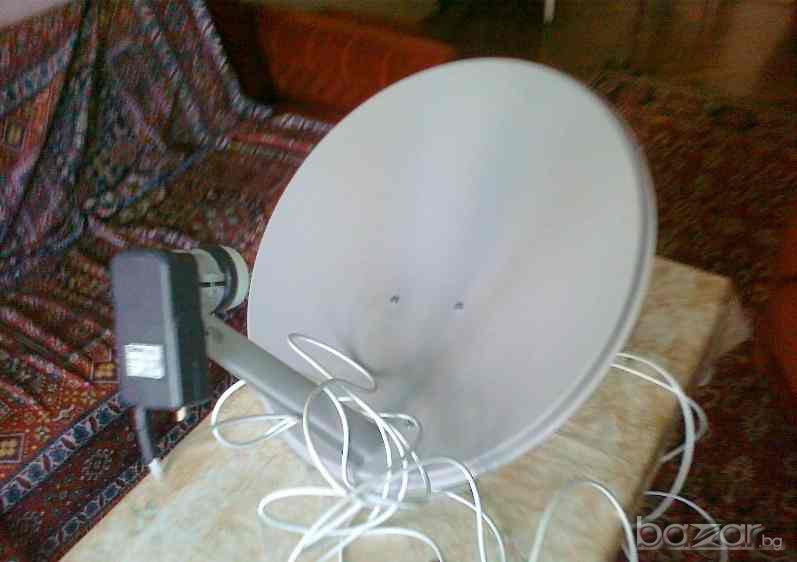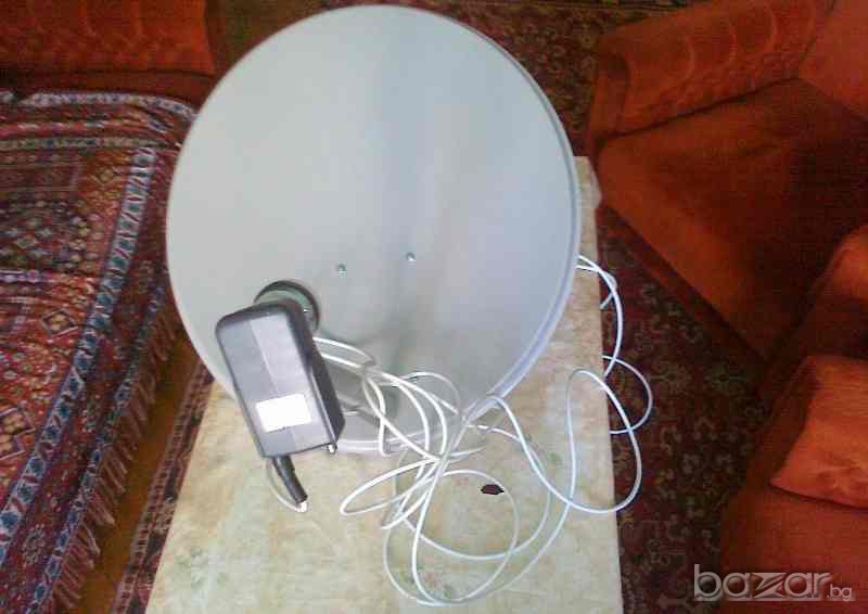Нова сателитна чиния с приемник, конвертор, дистанционно, коаксиален кабел(20м), документация и всички останали дреболии - комплект.