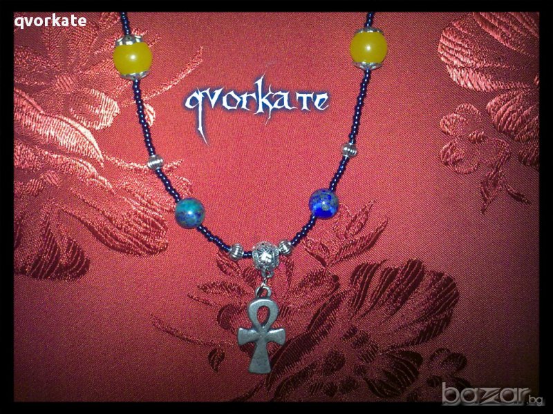Колие Аnkh-от фризокола,халцедон,метални елементи,чешки мъниста-28см.