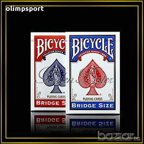 Карти за игра Байсикъл размер бридж. Червени и сини гърбове. 55 бр. в тесте. Всяко тесте опаковано в целофан.