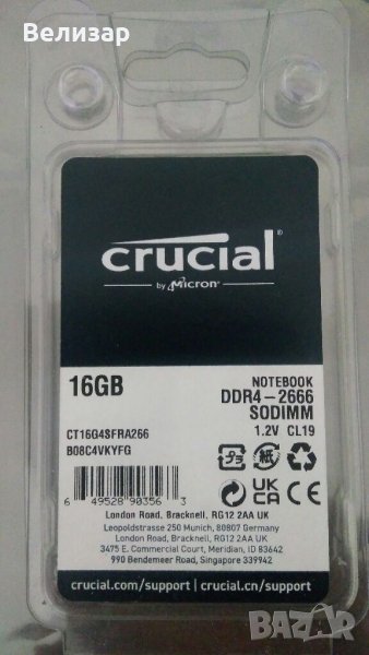 Crucial, 16GB/2666 (в оригинална опаковка, пускана само за проба)