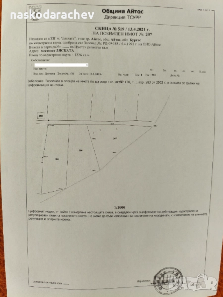 Парцел в регулацията на вилна зона "Ляската" - гр. Айтос → Обява 10817276