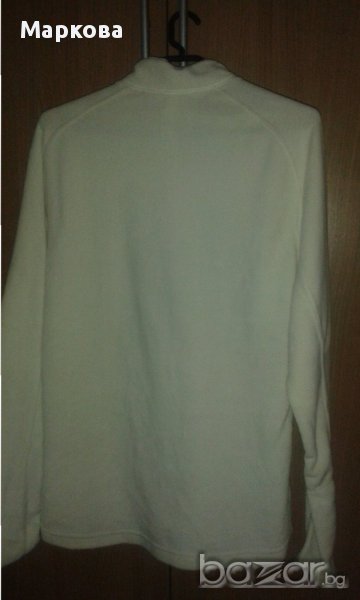 Дамски суитчър от полар. Бял, с цип. Размер 92/95 см. Европейска номерация М, американска - S. Без забележки.