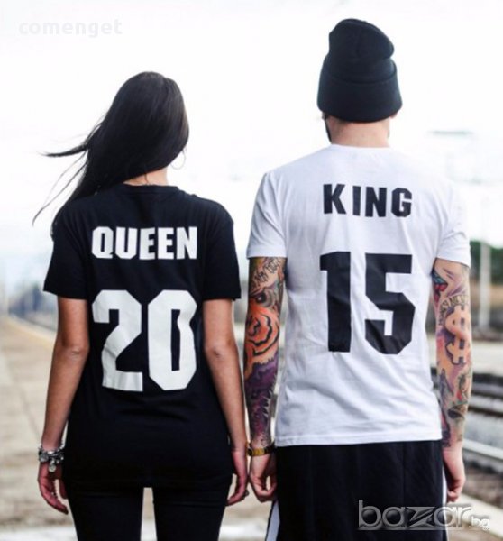 ЗАРАДВАЙ СЕБЕ СИ И СВОЯ ЛЮБИМ ЧОВЕК СЪС СТРАХОТЕН ПОДАРЪК! УНИКАЛНИ ТЕНИСКИ KING & QUEEN В ЦВЯТ ПО ТВОЙ ИЗБОР ЗА НЕГО И ЗА НЕЯ! Разполагаме с всички размери от S до 2XL от дамската и мъжката серия. Тениските са изработени е от 100 % памук с нова печатна технология!