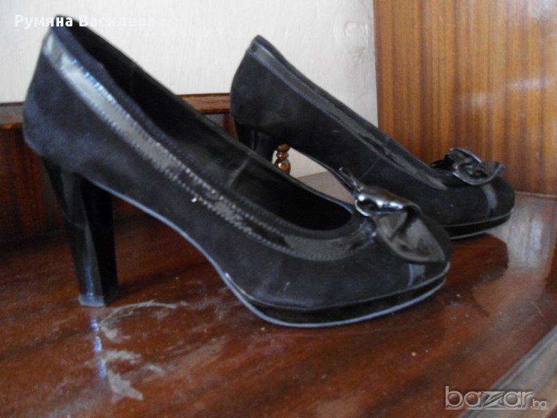 Продавам черни велурено-лачени обувки на ток → Обява 10841969