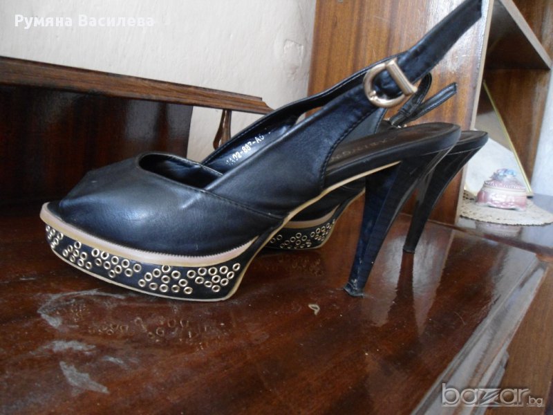 Продавам черни кожени сандали на ток → Обява 10841998