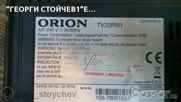Orion ТV20RN1 С Повредено Захранване → Обява 10850563