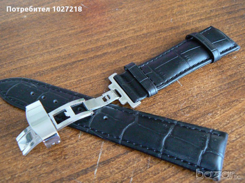 Кожена черна каишка, ,крокодилска щампа,НОВА 24/20мм.Дължината е 12.5/7.5см. Другото се вижда на снимките.Имам и други ,цветове и размери и пеперуди.Без бартери и коментар на цената.