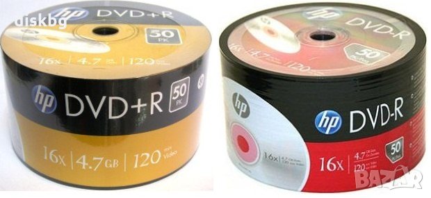 Нов записващ диск за еднократен запис DVD+R HP, 4.7GB, 120min, 16x, с лого. В опаковка по 50 броя. Цената е за 1 диск. Нови, фабрично запечатани, внос от Тайван. Отстъпки за количества. Цените са с включено ДДС. Изпращам по куриер с опция преглед и тест. Лично предаване от нашия магазин "PCtop.BG", намиращ се в гр. София, Студентски град, ул. Университетски парк № 7. Подробности за местоположение, работно време и други наши артикули на "DiskBG.com".